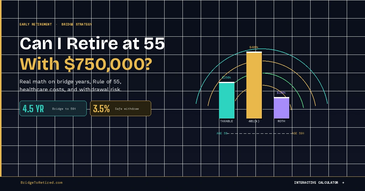 Yes, you can potentially retire at 55 with $750,000 — but the better question is: what spending level and account mix make $750,000 work at 55?